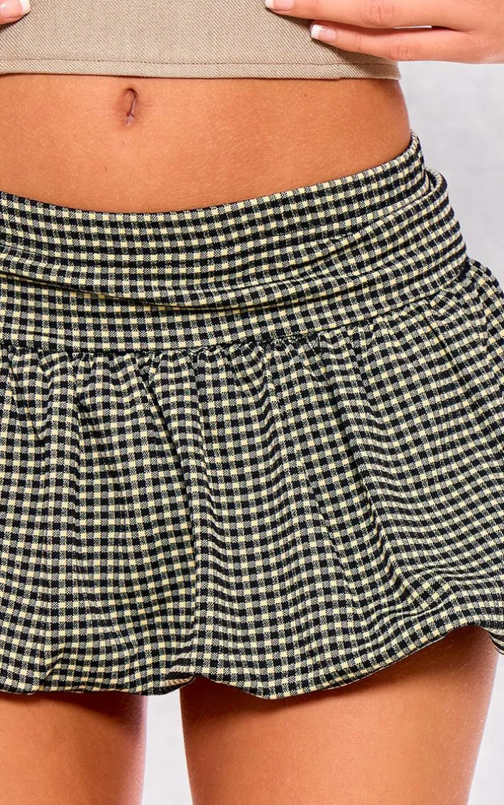 Be ready to look flawless this season with this brown gingham print crepe puffball mini skirt which will have you setting trends wherever you step foot. This is brought to you in a brow gingham print crepe material with a puffball design and a mini length, we are obsessed. To perfect the look simply style with a crop top, knee-high heel boots and accessories for a look that will have all eyes on you.