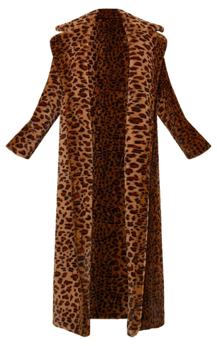 Steal all the stares in this brown leopard faux fur maxi coat. Brought to youin a brown faux fur material with a leopard print design and a maxi length that will not let you go unnoticed. This maxi coat paired with your fave heeled boots and your go-to cap will make you center of attention this season and beyond.