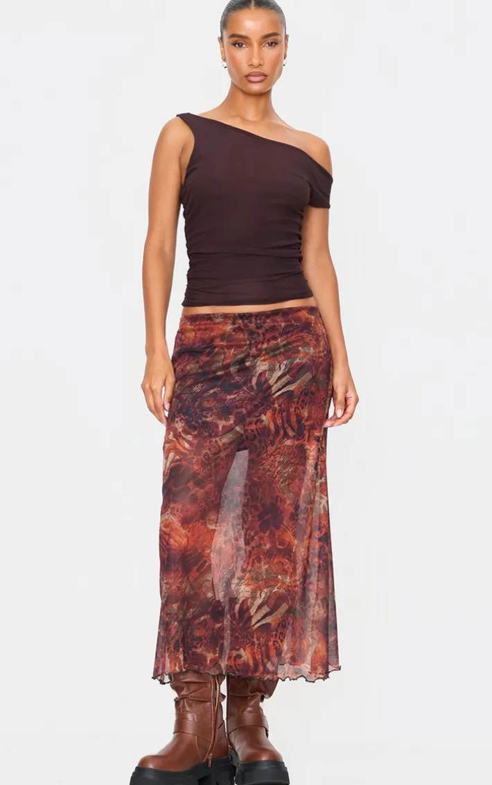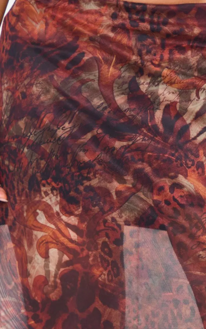 Nothing says new season quite like this brown leopard print asymmetric hem mesh midi skirt. Brought to you in a brown leopard print mesh fabric, with an asymmetric hem design and midi skirt length, it’s a must-have for your next party. Simply style with a plain tee and heels for a chic finish.