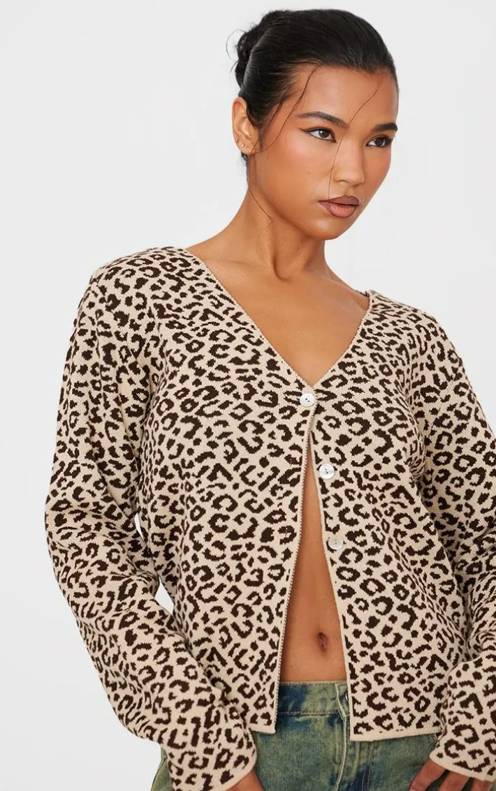Add some statement prints to your wardrobe with this brown leopard print knitted button up V neck cardigan. Brought to you in a brown knitted material with a leopard print design and a button up fastening, what’s not to love? this V neck cardigan is the ultimate must have. Team with a pair of jeans and accessories of your choice for a look we are loving.