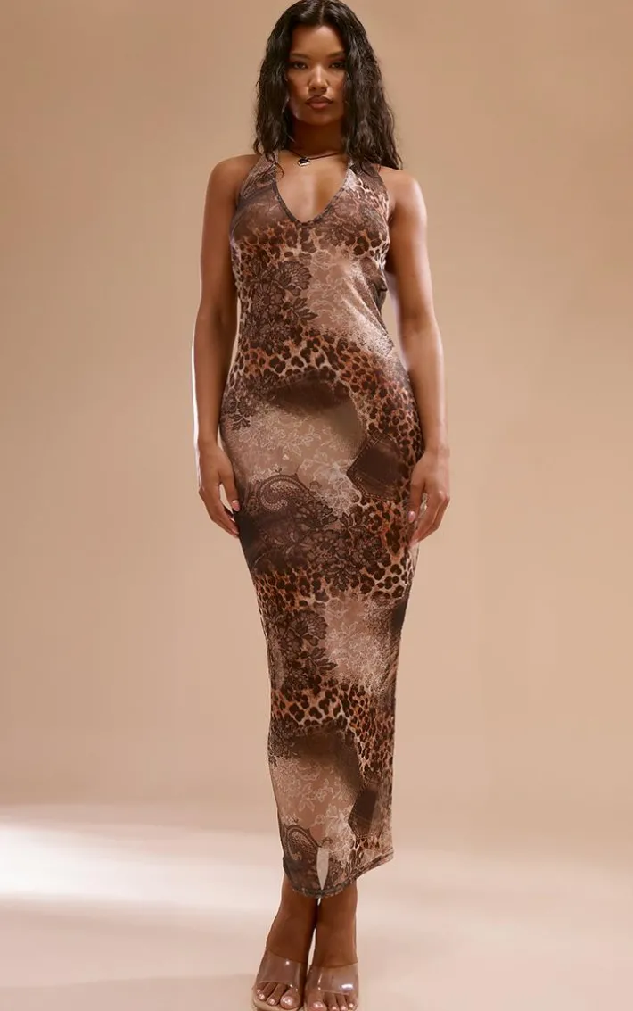 Say hello to your new weekend staple with this brown leopard print mesh halterneck midaxi dress. This midaxi dress is brought to you in a brown leopard print mesh material with a halterneck design and a midaxi length, what’s not to love? This midaxi dress won’t let you down. Simply style this with your dreamy high heels and accessories for a flawless finish.