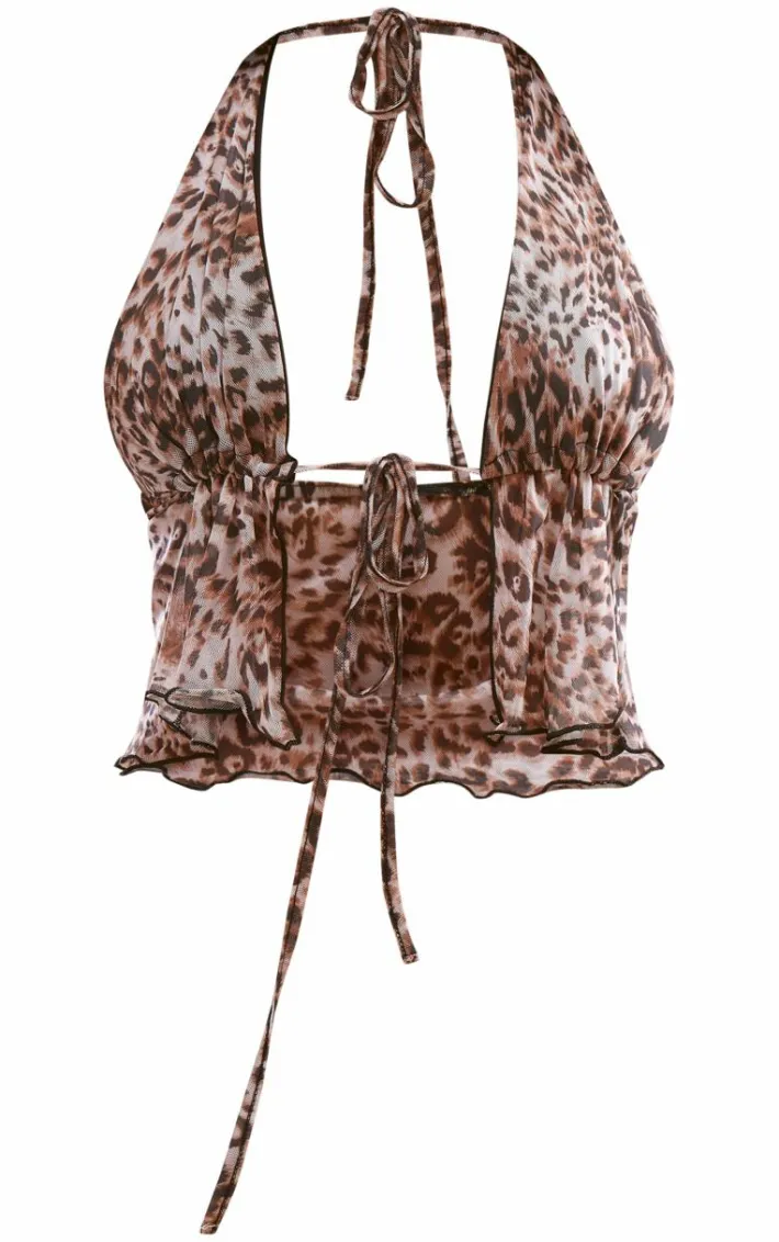Inject some on-trend animal prints into your weekend look with this brown leopard print mesh halterneck top. Made from a brown hue mesh material with a leopard print and a halterneck design, how can you not be obsessed? Style this brown top with the matching skirt, heels and gold accessories for a look that is sure to have all eyes on you.