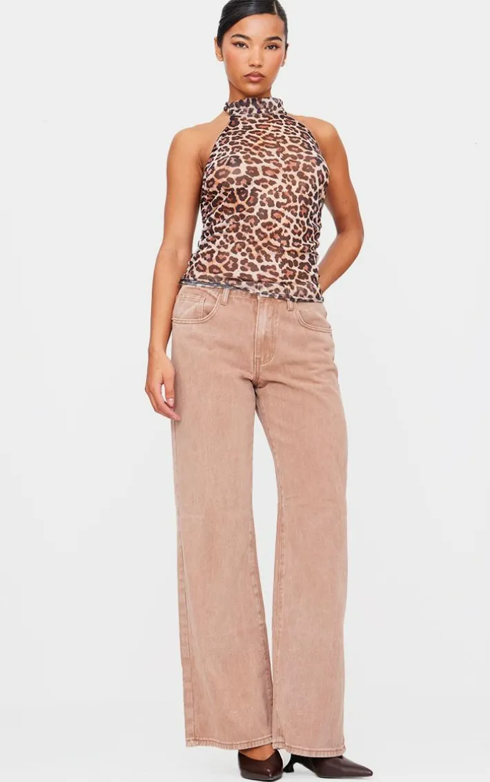 Add some statements prints to your new season wardrobe with this brown leopard print mesh high neck backless long top. Brought to you in a brown hue mesh material with a leopard print design and a high neckline, how can you resist? Style this long top with wide leg jeans and court heels for a look that is perfect for your weekend plans.