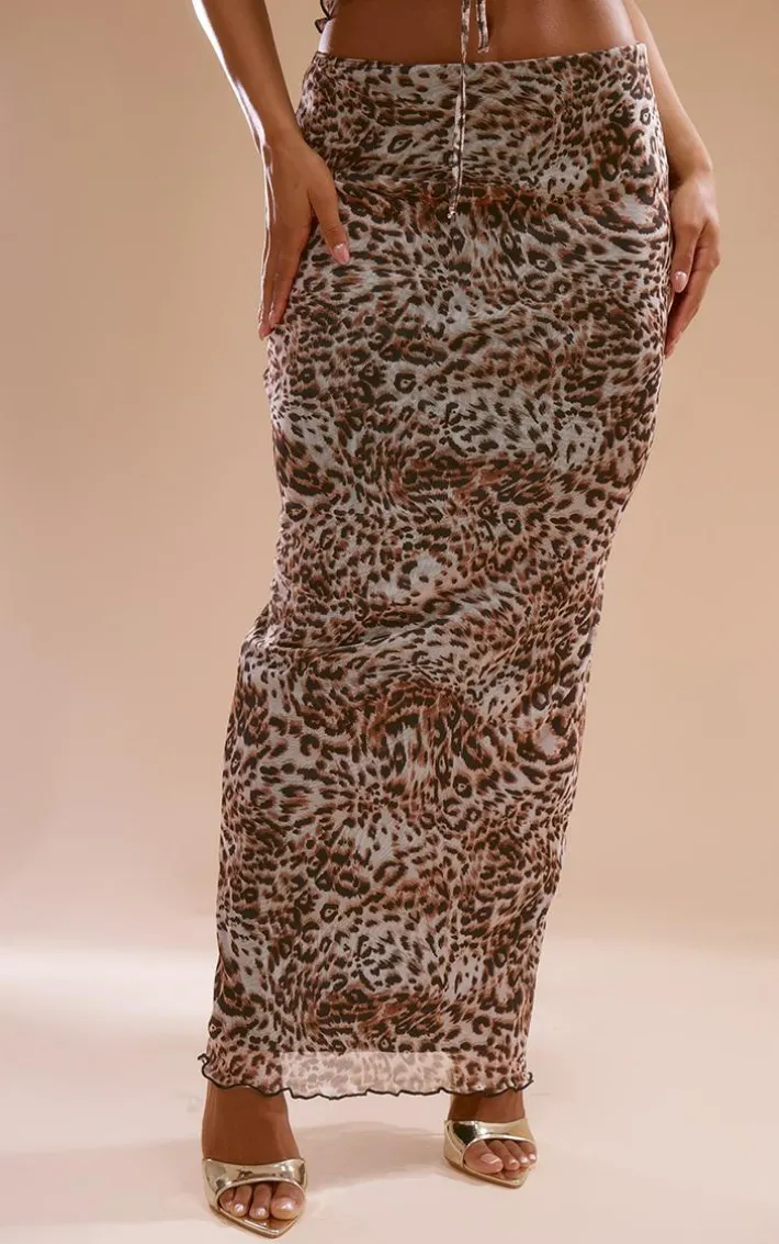 Take your outfit to a whole new level with this brown leopard print mesh low rise midaxi skirt. Brought to you in a brown hue mesh material with a leopard print design, a low rise fit and a flattering midaxi length, you really can’t go wrong. We are loving this midaxi skirt styled with the matching top, heels and gold accessories for a look that is sure to turn heads.