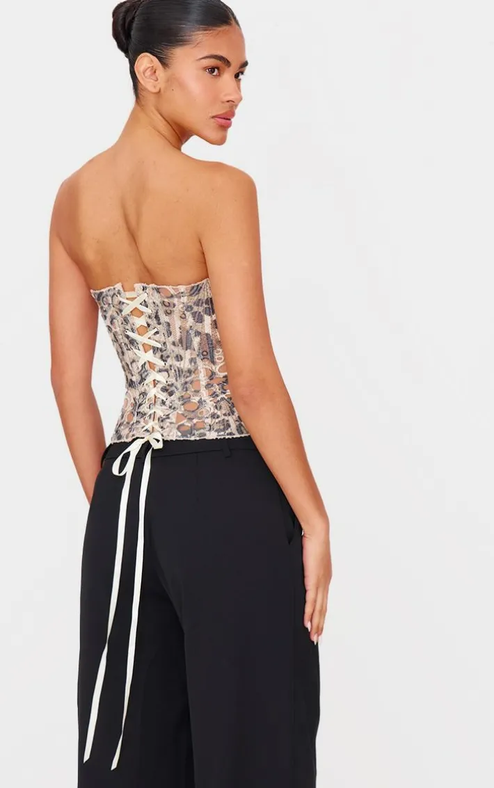 Add some statement prints to your weekend wardrobe with this brown leopard print textured sheer floral lace corset. Brought to you in a brown textured material with a leopard print design and a sheer floral lace detailing, what more could you want? Team this corset with a pair of wide leg pants and your fave heels for a look like no other.