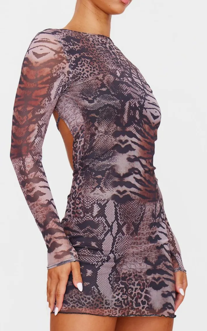 Stand out from the crowd in this brown leopard printed long sleeve open back mini dress. Brought to you in a brown hue material with a leopard print design, long sleeves and open back detailing, what more could you want? Style this mini dress with court heels and simple accessories for a look we just can’t get enough of.