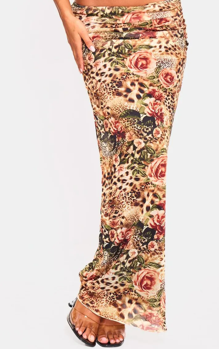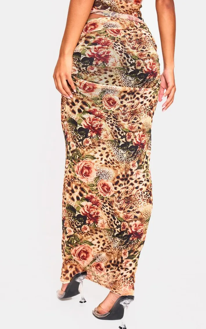 Inject some of this seasons newest print into your wardrobe with this brown leopard printed mesh ruched maxi skirt. Brought to you in a brown leopard printed mesh material with a ruched detail, this maxi skirt is everything you need and more. Style with the matching bandeau top, black heels and gold accessories for a chic finish. It’s official, we’re obsessed.
