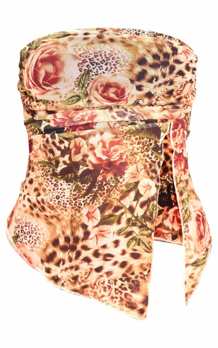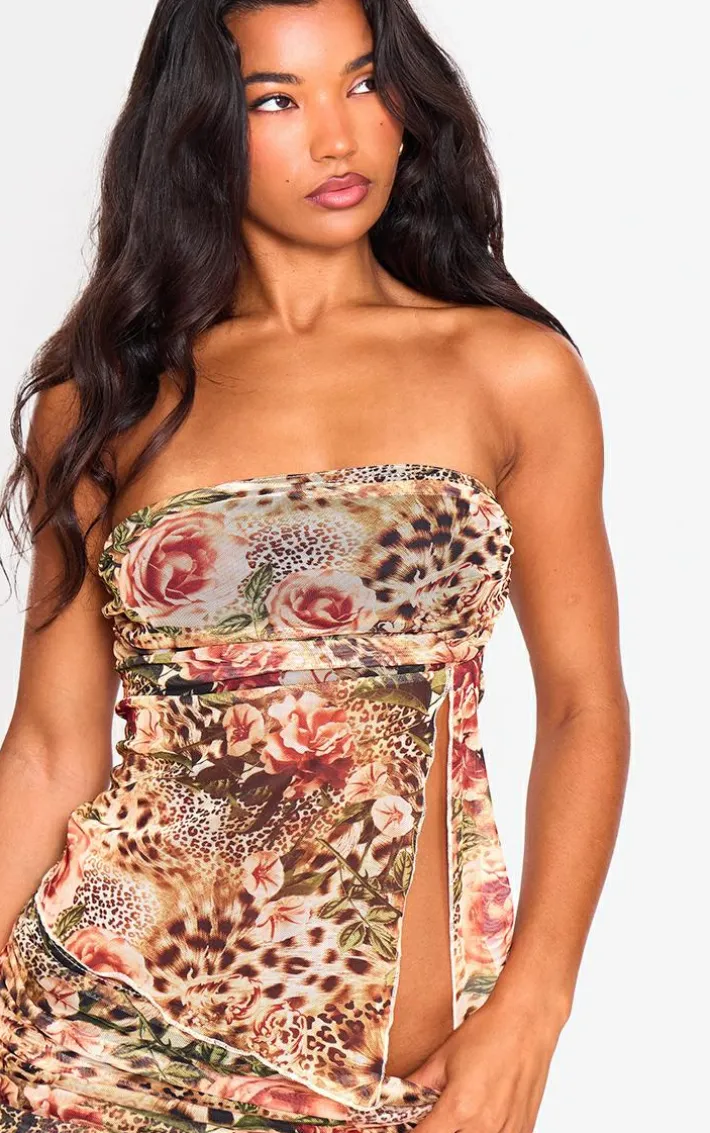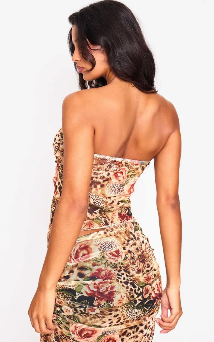 Stay in style this season in this brown leopard printed mesh side open bandeau. Brought to you in a brown hue mesh material with a leopard printed design and side open detail, this bandeau is a must have. How can you resist? Style with the matching maxi skirt, your fave heels and gold accessories for a combo we’re crushing on.