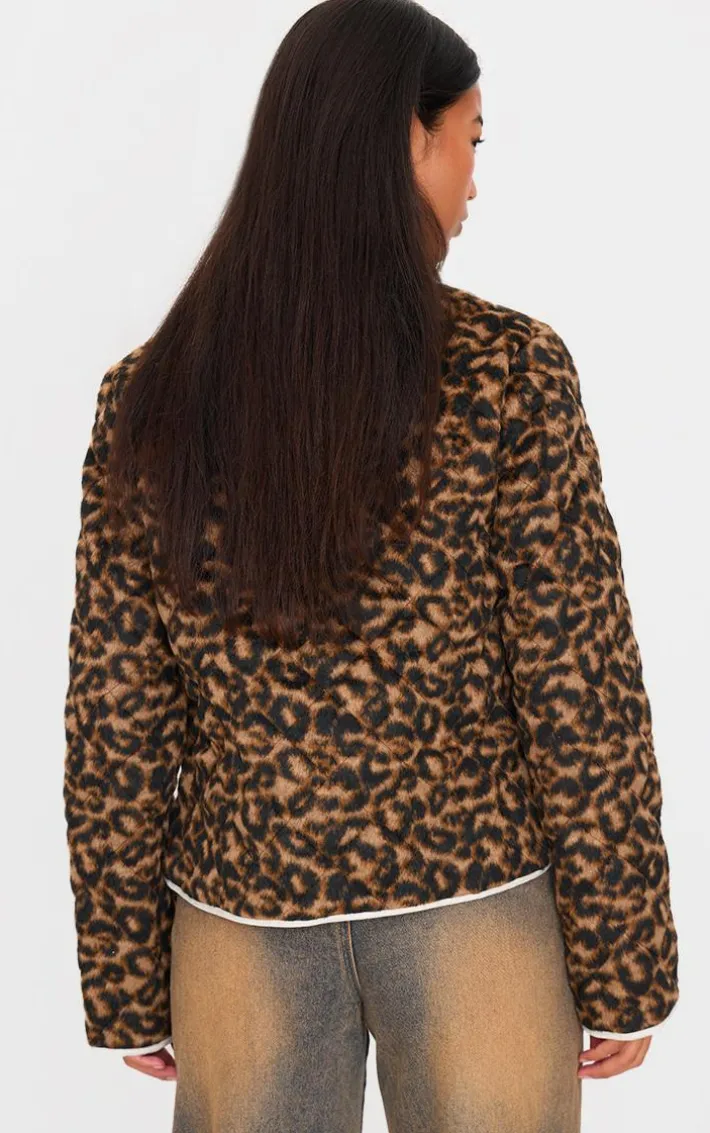 Your outfit of the day is calling out for this brown leopard quilted contrast binding jacket. Brought to you in a brown quilted material with a leopard print design and a contrast binding detail, what’s not to love? Team with your fave accessories for a look that will have heads turning no matter what the occasion.