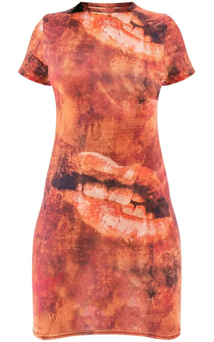 When your weekend look is in need of some statement prints, we’ve got you covered with this brown lips print slinky cap sleeve bodycon dress. Brought to you in a brown hue slinky material with a lip print design, cap sleeves and a bodycon fit, how can you say no? Style this bodycon dress with knee length heeled boots, a mini bag and gold accessories for a look that is perfect for dressing up or down to suit any occasion.