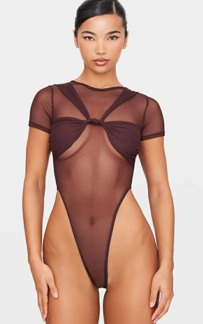 Add an edge to your weekend wardrobe with this brown mesh knot bust panel detail body. Brought to you in a brown mesh material with knot bust panel detailing and a flattering fit, how can you resist? Style this brown body with jeans, court heels and gold accessories for a look that is sure to turn heads.