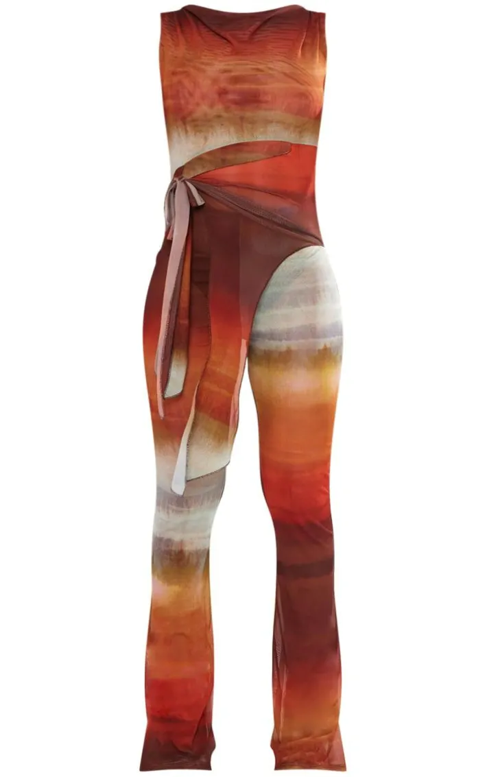 Turn up the heat this weekend with this brown ombre print knot detail mesh jumpsuit. Are you meeting all your faves this weekend or is it date night with someone special? Whatever you’re plans you’re sure to impress with this jumpsuit. Made from a brown ombre print mesh material, knot detail and a super flattering fit, how could you say no? Simply add your highest heels and gold accessories for a dreamy look that will be unforgettable.
