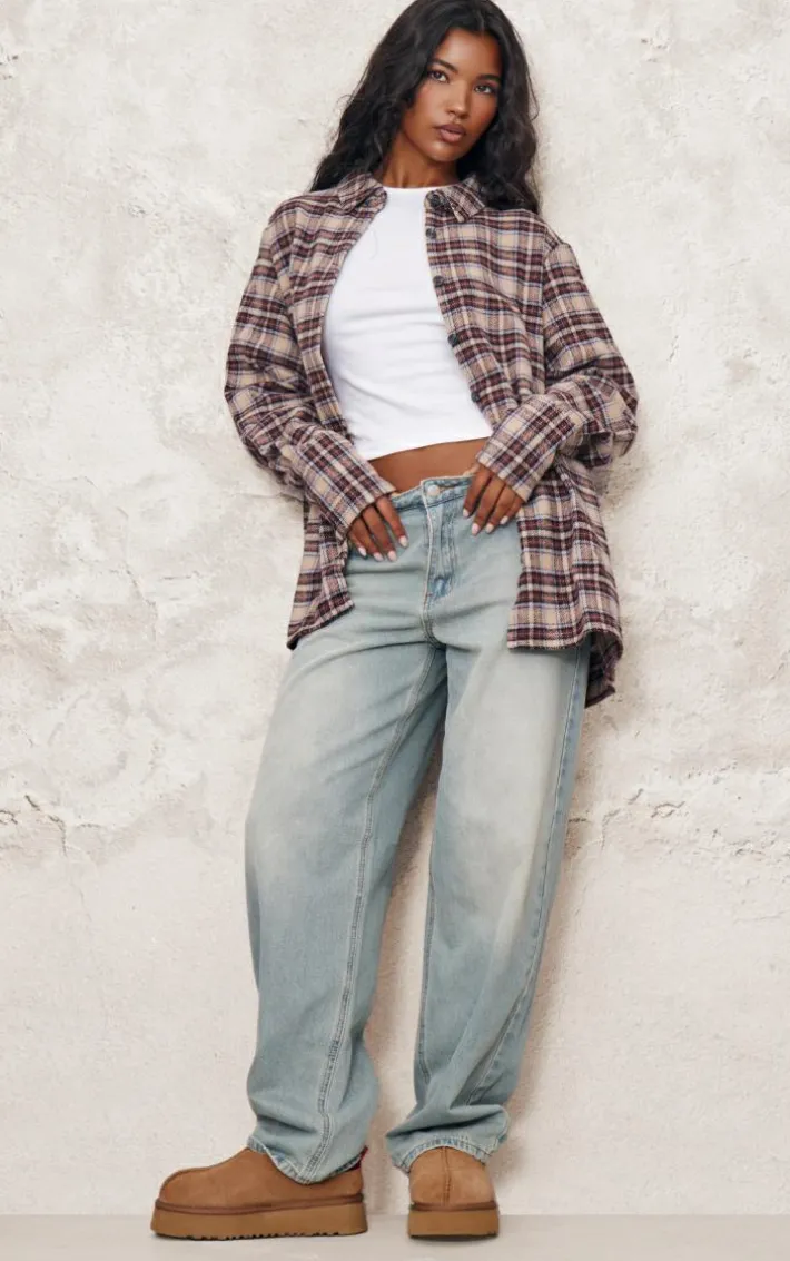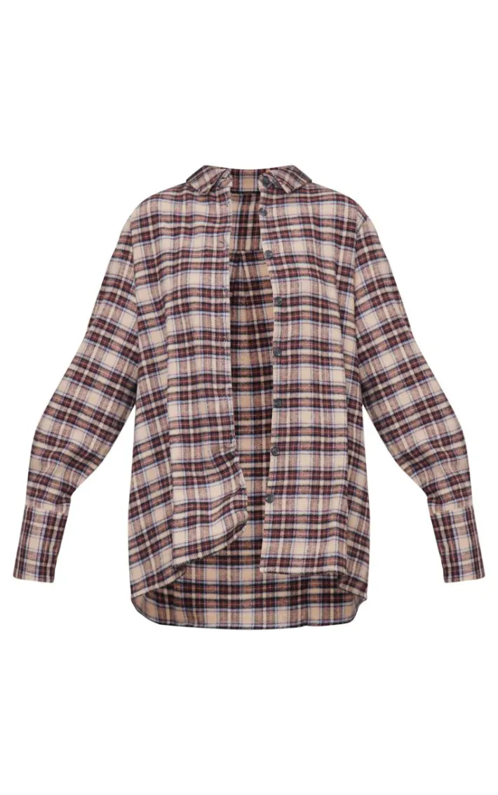 Layer up your look in style with this brown oversized flannel shirt. Made from a brown flannel material with a check print design and an oversized fit, what more could you want? Team this flannel shirt with your fave off-duty pieces for a statement finishing touch to any look.