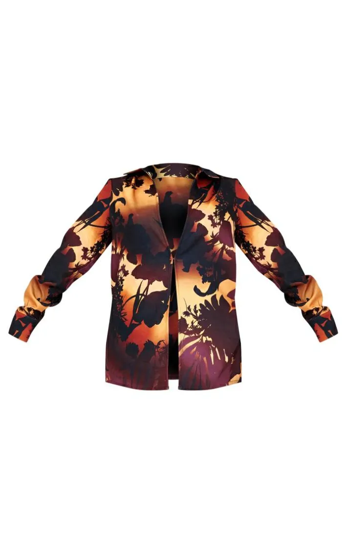 Switch up your weekend style game with this brown oversized floral ombre print shirt. Brought to you in a brown hue material with a dreamy floral ombre print design and an oversized fit, how can you resist? We are loving this oversized shirt styled with the matching pants, heels and gold accessories for a look that is sure to make you stand out from the crowd.