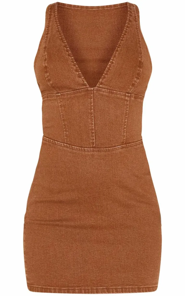 We’re crushing on this brown plunge corset style denim mini dress for a weekend look that will have all eyes on you. Brought to you in a dreamy brown shade, with a plunge design, denim material and corset style for the ultimate figure-flattering fit, how can you resist? Style with some knee length leather look boots and gold accessories to really make an impact.