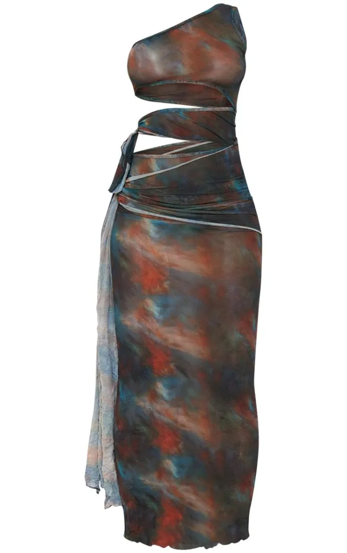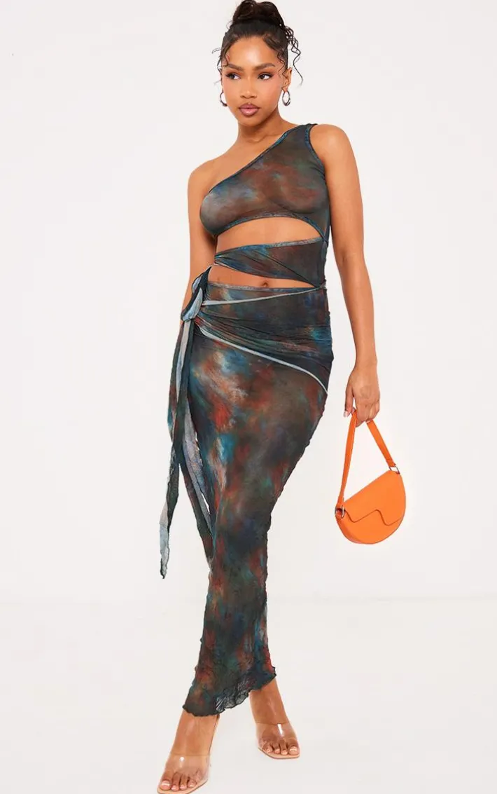 Make a statement wherever you step foot with this brown printed crinkle mesh cut out midi dress. Brought to you in a brown crinkle mesh material with a printed design, what’s not to love ? Its cut out detail and midi length, this dress is all you need to feel seriously chic. Team with a pair of clear heels and your go-to shoulder bag to finish off the look.