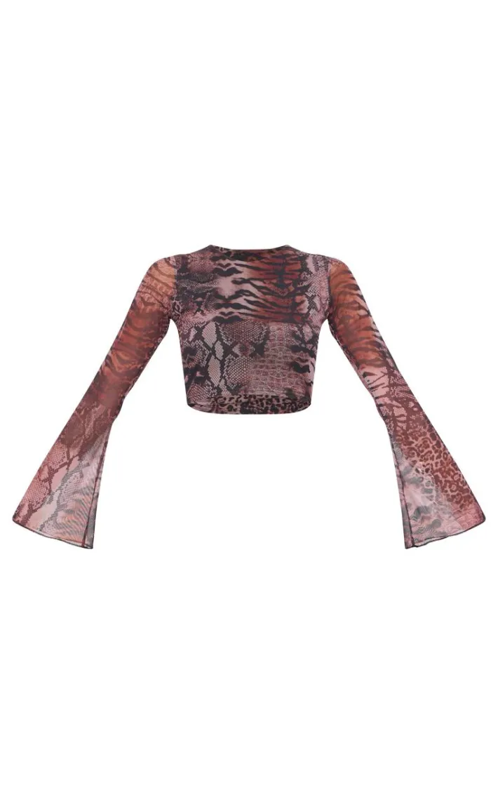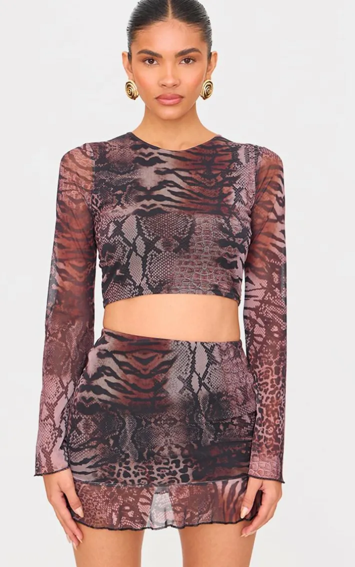 Add some neutral hues to your new season wardrobe with this brown printed mesh long sleeve top. Brought to you in a brown mesh material with long sleeves. what more could you want? We are loving this mesh top styled with the matching skirt and heels for a look that is perfect for your weekend plans.