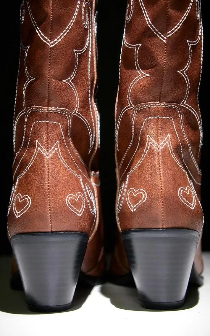No outfit is every complete without these brown faux leather point toe heart stitched western knee high heeled boots. Brought to you in a brown PU material with a point toe design and a heart stitched detailing, we are obsessed. These western knee high heeled boots are all you need to stand out from the rest. Team with a mini skirt and a statement top for a look like no other.