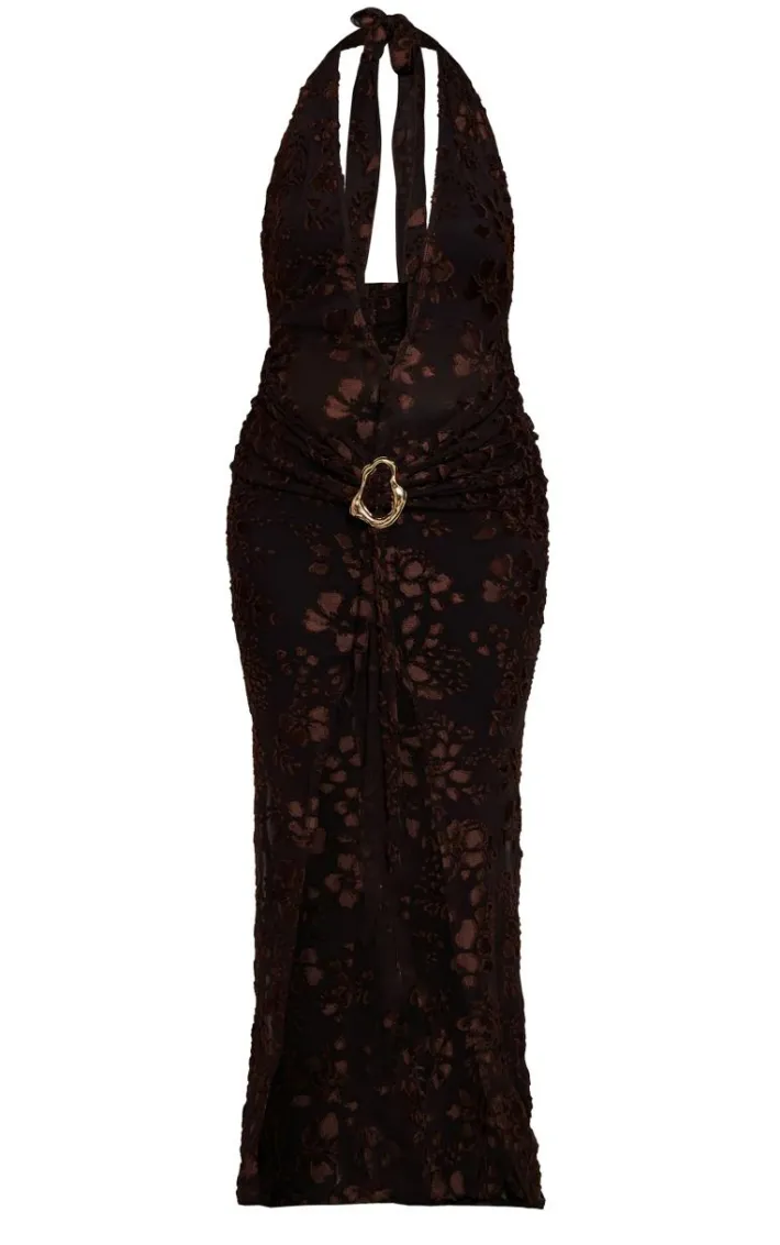 Keep it seriously chic with this brown sheer devore plunge maxi dress. Brought to you in a brown sheer material with a devore design and a plunge detail, what more could you want ? Its maxi length is sure to turn heads for all the right reasons. So what are you waiting for ? Team with your fave heels and accessories for a look like no other.