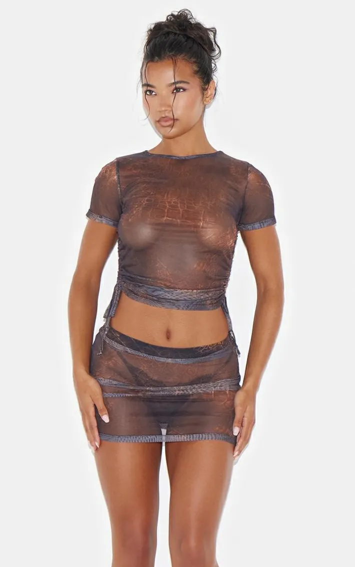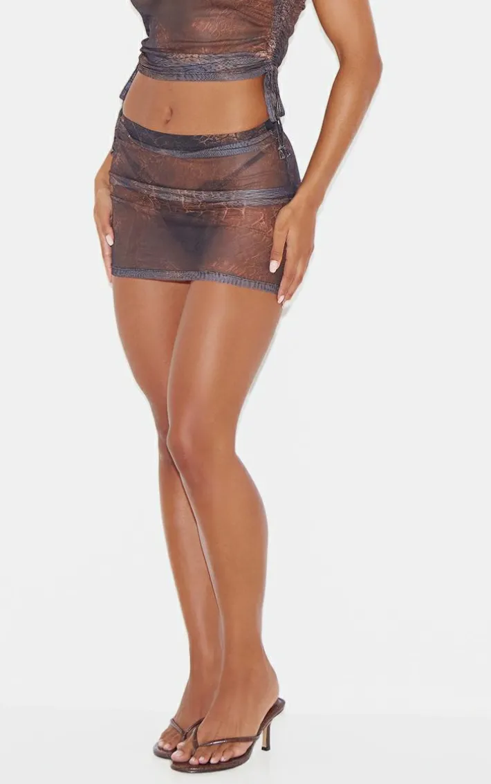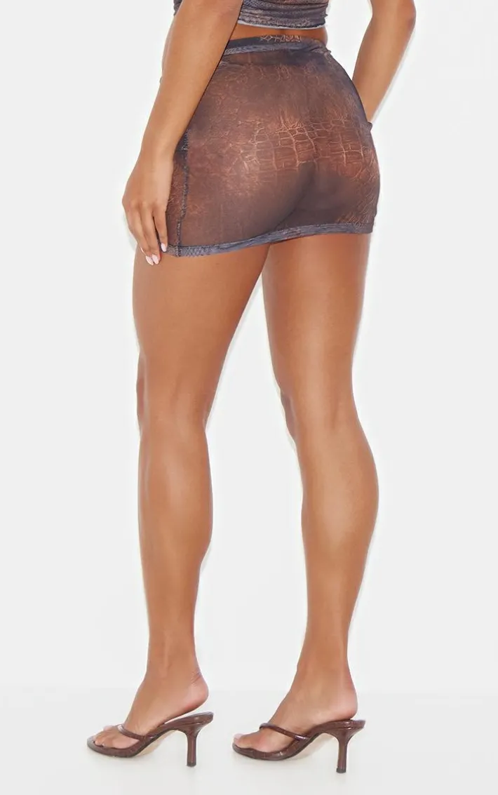 We’re dreaming about this brown snake print mesh micro mini skirt all season long. Brought to you in a staple brown shade, with an unreal snake print detail, mesh material and micro design, how can you say no? Simply style with the matching top, some fierce heels and a mini shoulder bag for your next night.