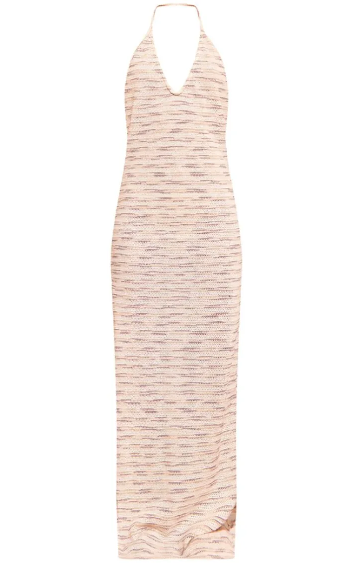 Step into the weekend in style with this brown textured halterneck backless maxi dress. Brought to you in a brown textured material with a halterneck fastening and backless detail, what’s not to love? Style with sandals and gold accessories for a luxe look this season.