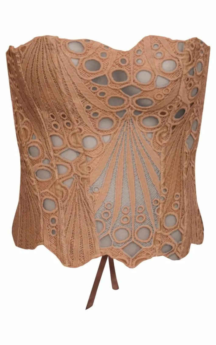 Look all kinds of glam in this brown textured sheer floral lace corset. Brought to you in a brown hue textured lace material with a sheer detail and floral design, this corset will turn heads wherever you step foot. Pair with wide leg jeans, your fave courts and simple accessories for a look we’re seriously in love with.