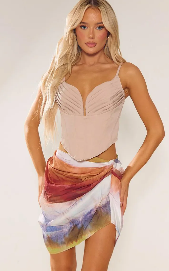 We’re all for a mini skirt this season and this brown tie dye gathered mini skirt is the perfect piece to complete your collection. Brought to you in a brown tie dye material with a gathered design and a mini length, what more could you ask for? This mini skirt has endless styling potential and we know you won’t be able to resist it. Pair with a crop top, clear heels and gold accessories for a weekend-worthy finish.