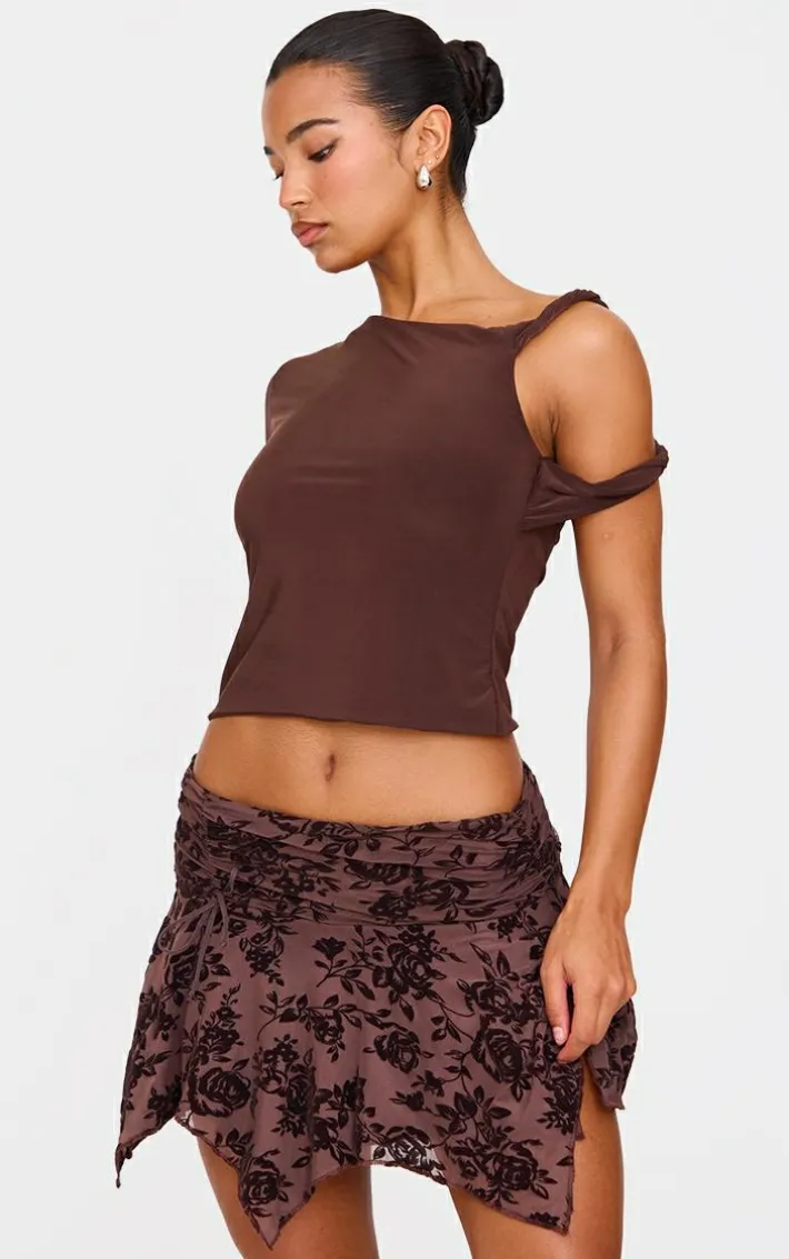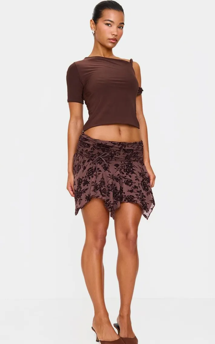 Take a chance on this brown velvet floral detail mini skirt for a look you won’t regret. With its must have brown hue, luxe velvet material and floral detail, reach for this for your next occasion. Style with a brown cut out top and court heels. This is all the new you need for the season ahead.