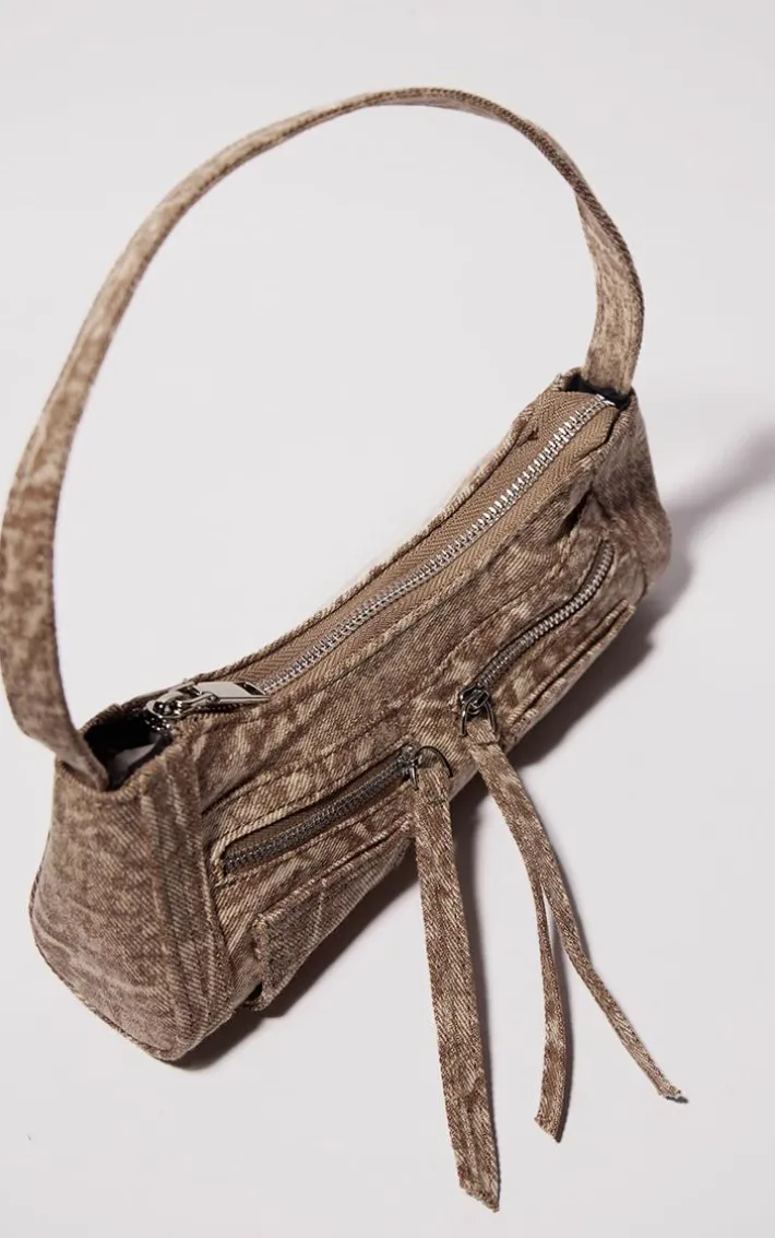 No outfit of the day is complete without this brown washed denim utility mini shoulder bag. Brought to you in a brown washed denim material with a utility design, this mini shoulder bag is at the top of our most wanted list. Style with a neutral outfit of the day to elevate the look further.