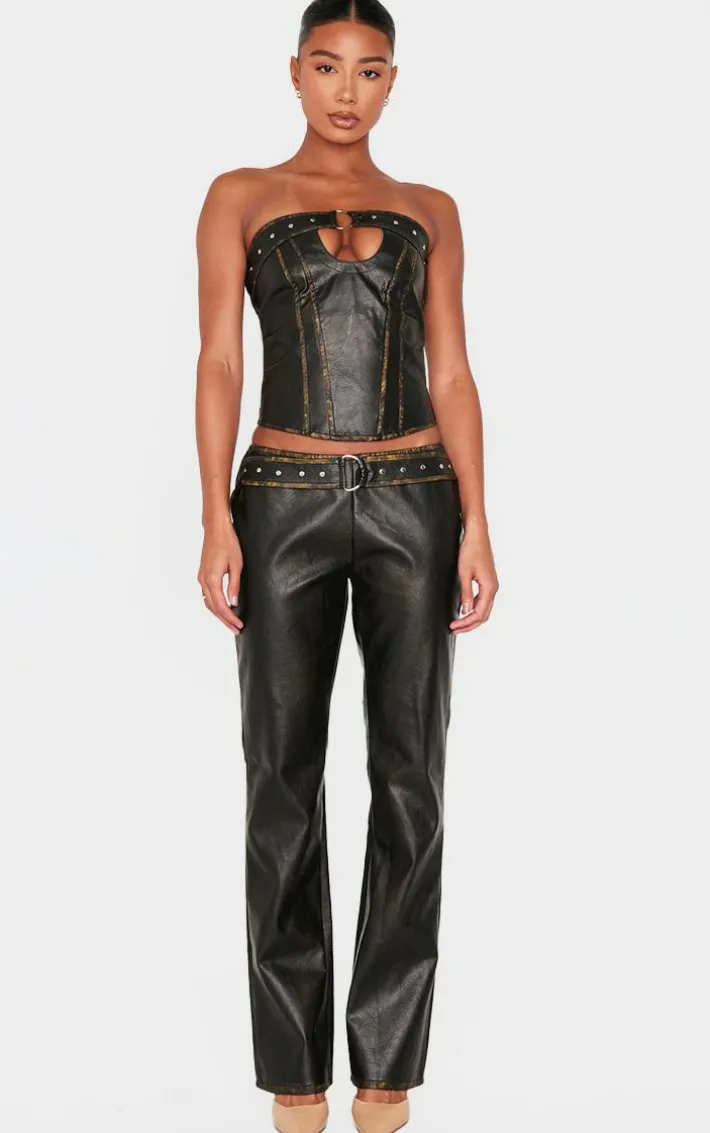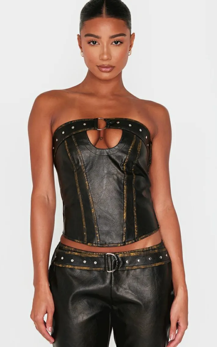Get ready to earn some serious style points in this brown washed faux leather belted trim corset. Brought to you in a brown washed faux leather material with a belted trim design and a flattering corset fit, what’s not to love? Style this faux leather corset with the matching mini skirt and heels for a look they won’t be able to take their eyes off.