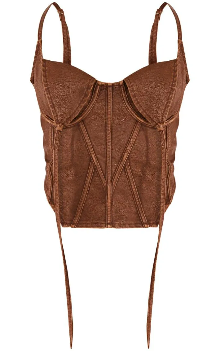 Get your glam on with this brown washed faux leather under wire seam detail corset. Made from a brown faux leather material with an under wire seam detail, you’re sure to have all eyes on you. When the weekend calls, so does this corset. it’s washed design is the ultimate must -have in your collection. So what are you waiting for? Shop the look and opt for a mini skirt, gold hoops and a statement bag. It’s a yes from us.