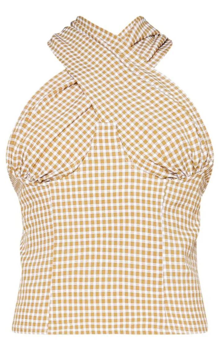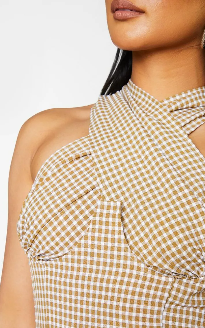This checked corset is at the top of our new season hit list doll. Perfect for dressing up or down, work your styling techniques to make this corset top fit for any occasion. Featuring a brown woven material with a check print, a cross over strap design and zip back fastening, we just can’t get enough of this haltenreck corset. Team this with white pants, heels and accessories for a look that will have all eyes on you.