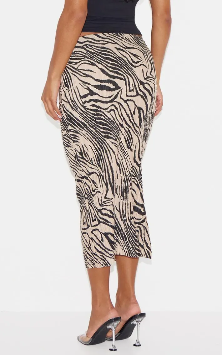 This black midi skirt is everything we are loving for your day to night wardrobe, we’re seriously obsessed. Featuring a zebra print on plisse material with a relaxed fit and a midi length, how could you resist? This zebra skirt is a must-have this season and is sure to be a staple piece that you can style seamlessly with your existing wardrobe pieces. Team this zebra print skirt with a crop top and chunky boots for the ultimate chic, off-duty fit.