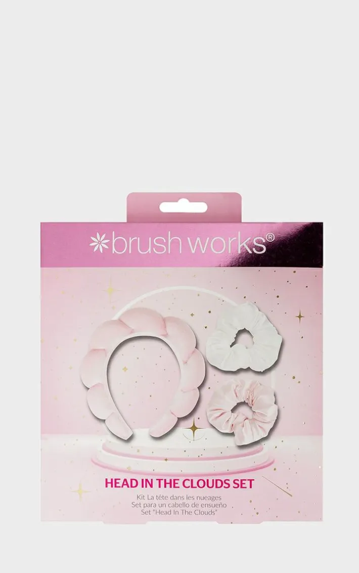 Introducing the Brushworks Head In the Clouds Set, a delightful combination designed to elevateyour beauty routines with ease and style. This set features a cloud headband and two large cloud scrunchies, providing both comfort and functionality to keep your hair effortlessly in place while you pamper yourself. Say goodbye to hair tugging and breakage during your beauty rituals, as the soft and plush cloud headband gently holds your hair back without causing discomfort. The cloud scrunchies are perfect to use day or night, ensuring a secure holdwithout pulling or damaging your hair. Whether you’re applying skincare, doing your makeup, or simply relaxing, the Head In the Clouds Set is the perfectcompanion to keep you feeling comfortable and stylish throughout your beauty routines.