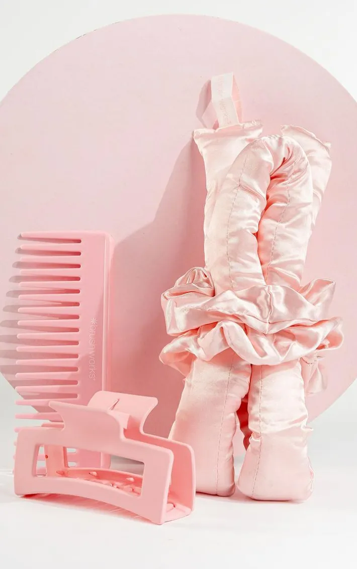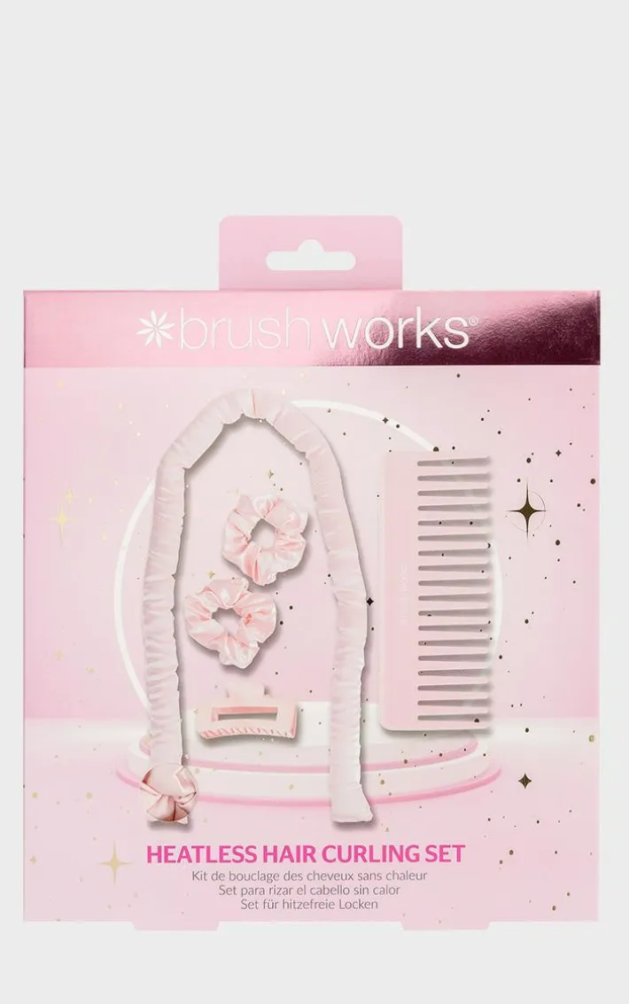 Introducing the ultimate styling companion: Brushworks Heatless Hair Curling Set. Elevate yourhairstyling routine with this comprehensive set, designed to empower you to create effortless waves and curls with ease. The Curling Rod, measuring offersversatile styling options, allowing you to achieve your desired look effortlessly. Paired with our Satin Scrunchies, crafted for gentle hold and minimal hair breakage, and the chic Claw Clip for securing sections while styling, this set provides both functionality and elegance. Complete your styling arsenal with the Wide Tooth Comb, designed for detangling and distributing product evenly through your locks.