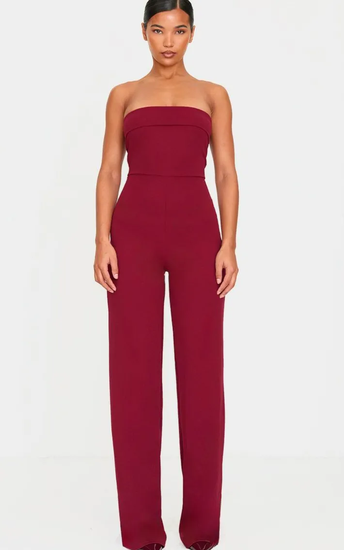 Introducing classy silhouettes with this burgundy crepe fold over detail wide leg jumpsuit. Made from a burgundy hue crepe material with a fold over detail and wide leg design, this jumpsuit is a must have for all those special occasions. Style with point toe heels and simple accessories for a look that won’t go unnoticed.
