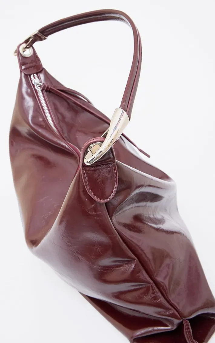 This burgundy crinkle patent PU oversized slouchy tote bag is at the top of our new season hit list. Brought to you in a burgundy hue patent PU crinkle material with an oversized slouchy design and a zip fastening, what’s not to love? Style this tote bag with your outfit of the day for the perfect finishing touch.