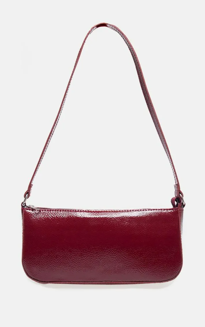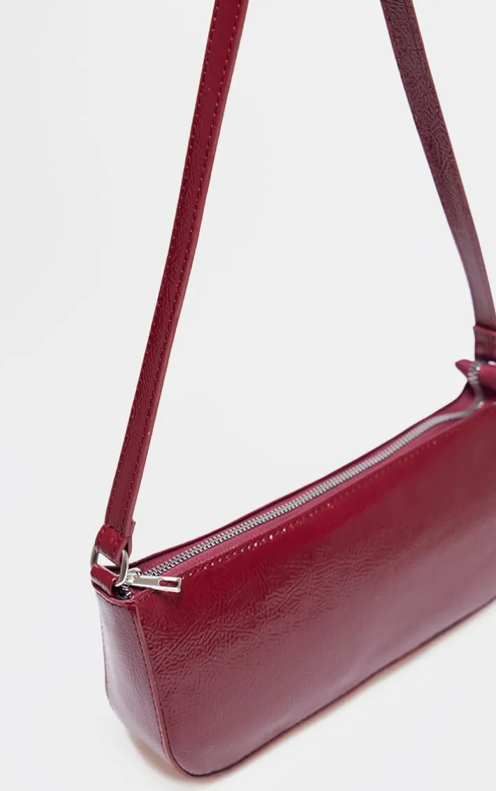 Channel the hue of the season into your outfit of the day with this burgundy crinkle patent PU zip shoulder bag. Brought to you in a burgundycrinkle patent PU material with a zip fastening, how can you resist? Style this burgundy shoulder bag with any look for the perfect finishing touch.