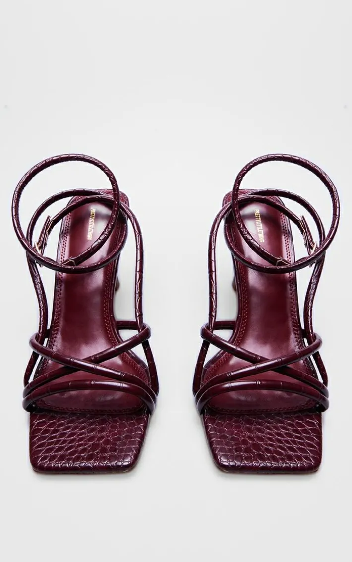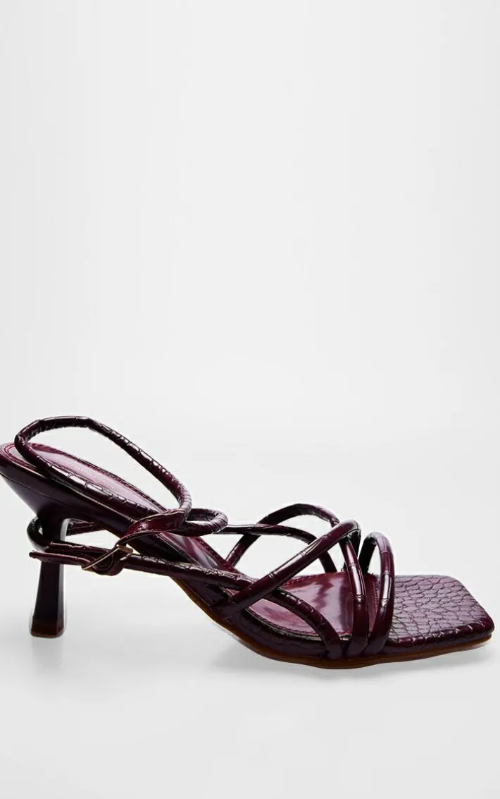 When your weekend look is in need of an extra touch of chic, we’ve got you covered with these burgundy croc PU square toe tube strappy mid stiletto heeled sandals. Made from as burgundy croc PU material with a square toe design tube straps and a mid stiletto heel, how can you resist? Simply add these heeled sandals to any outfit to instantly elevate the look.
