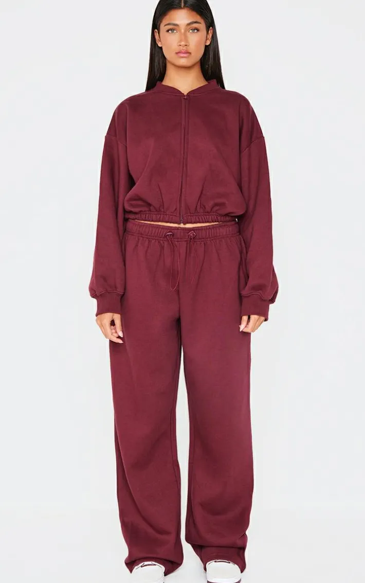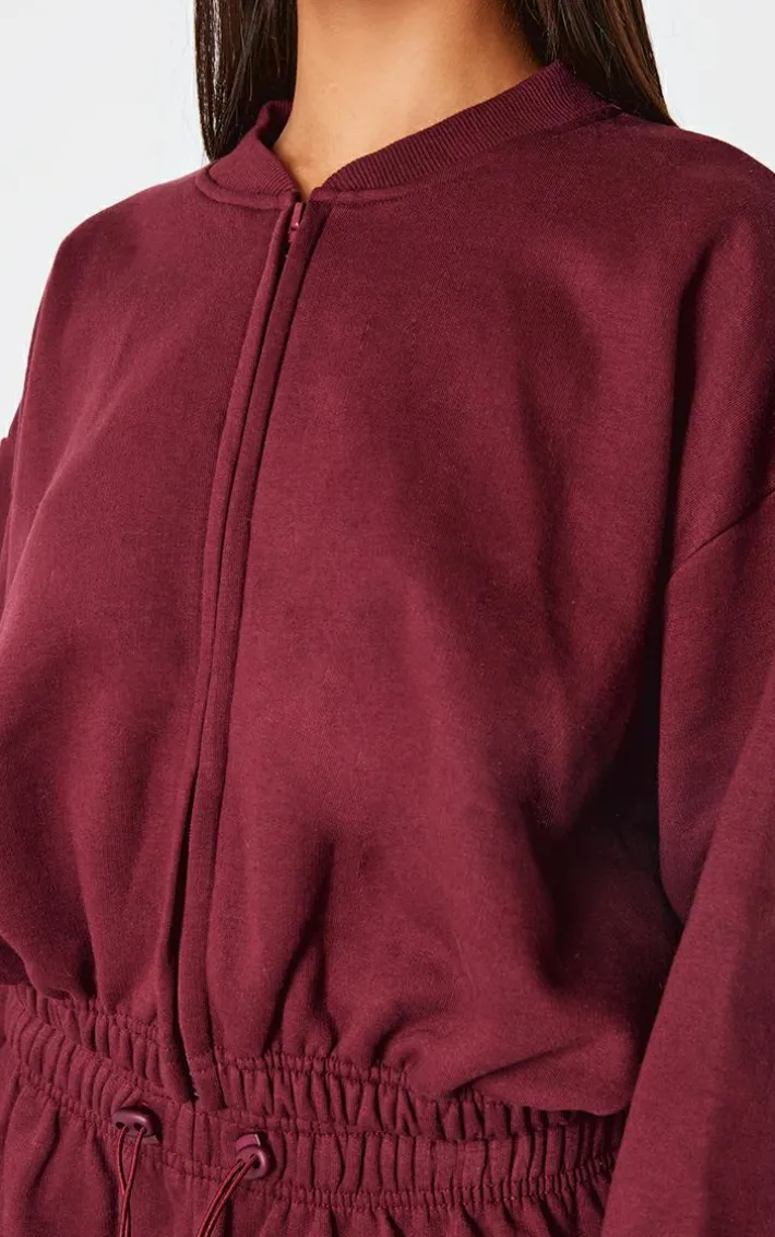 Opt for this burgundy drawcord waist cropped zip up Sweatshirt for a look you’ll be reaching for again and again. Brought to you in a luxe burgundy hue, witha flattering drawcord waist design and zip up feature, what’s not to love? Team with the matching sweatpants and a pair of sneakers for a look like no other.