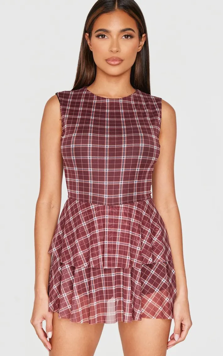 This burgundy gingham print mesh rara skort romper is here to banish any of your what to wear dilemmas. Brought to you in a burgundy slinky material with a rara design, we can’t get enough. From start to finish this romper will have you looking and feeling confident. For a fool proof finish simply style with boots and gold accessories.