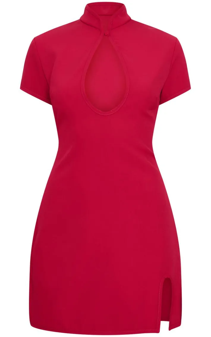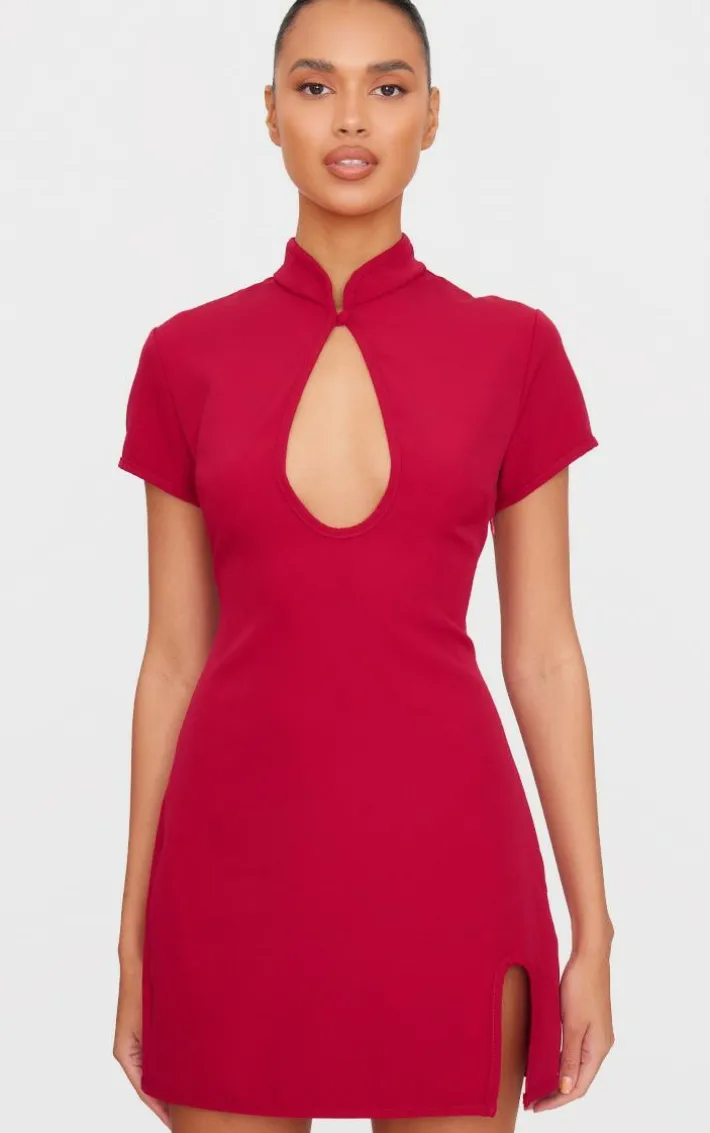 Make styling easy with this burgundy key hole contrast mini dress. Brought to you in a burgundy hue material with a key hole detail and contrast design, this mini dress is all the new you need. Style with slip on heels and simple accessories for an elegant finish we’re loving.