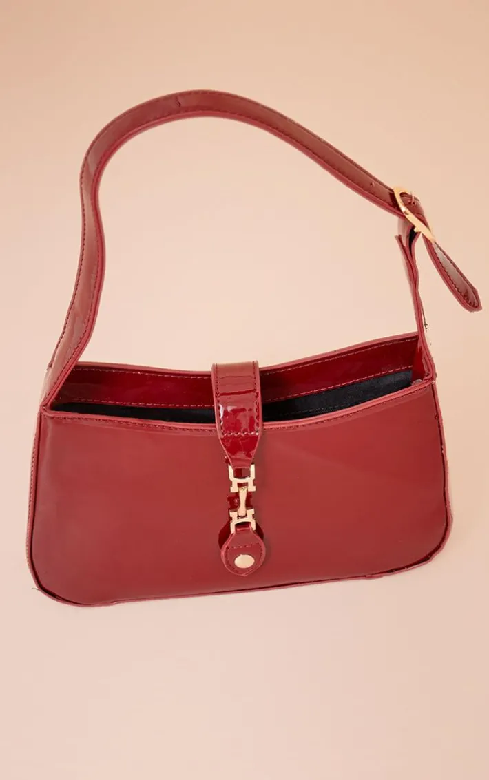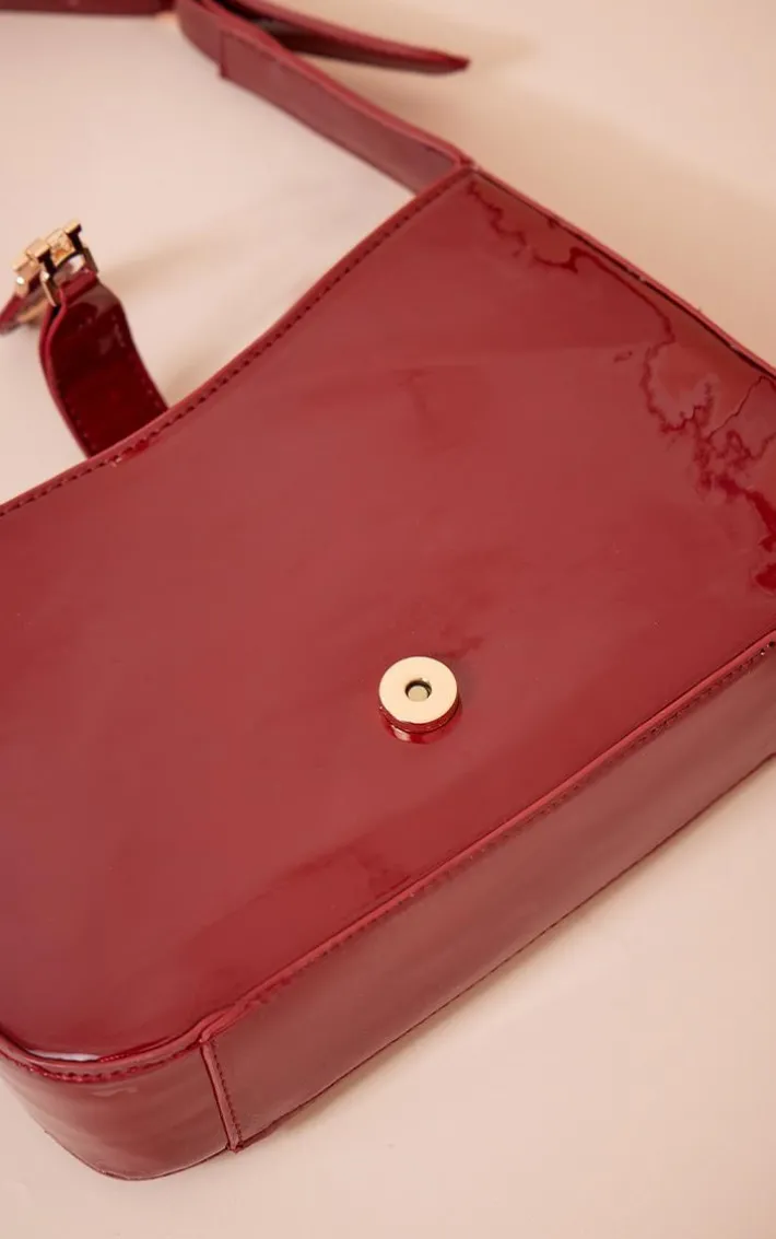 Add some of this season’s must-have hue into your wardrobe with this burgundy patent clasp detail shoulder bag, we’re seriously in love. This bag is brought to you in a burgundy patent material with a clasp detail and a shoulder style. Just add it to your fave outfit of the day for a look you won’t be able to resist.