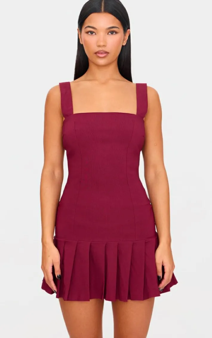 Make heads turn for all the right reasons in this burgundy pleated shift dress. Brought to you in a burgundy hue material with a pleated design and a shift style, how can you say no? Pair this shift dress with heels and accessories for a look that won’t be forgotten.