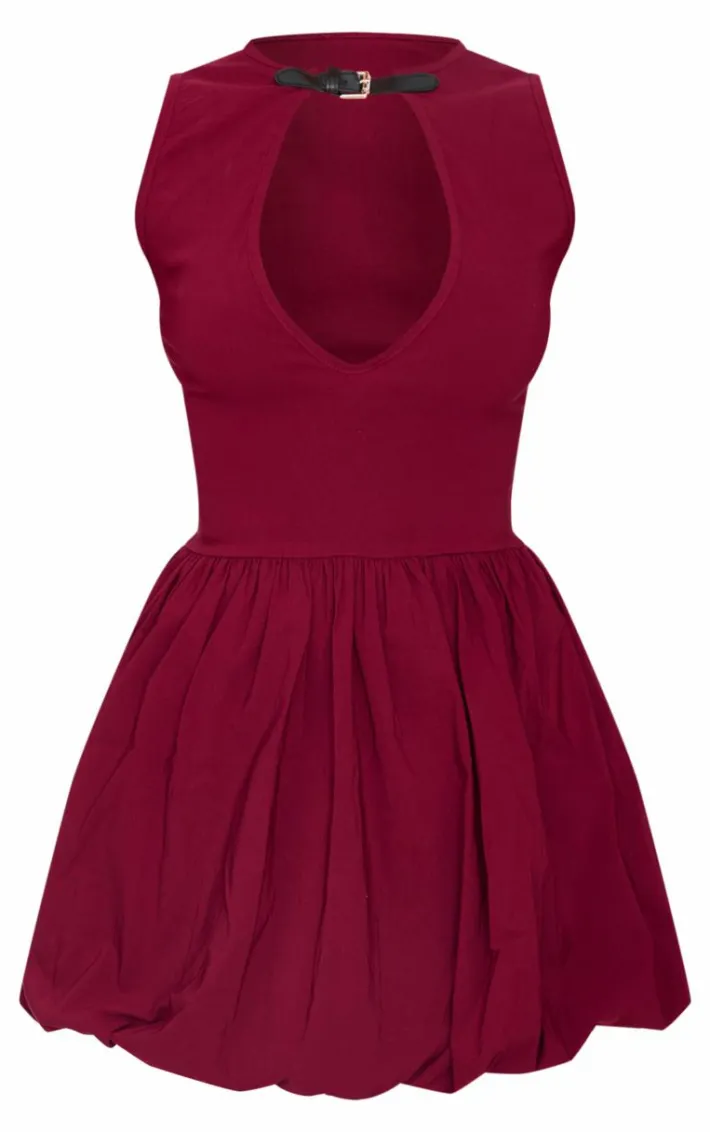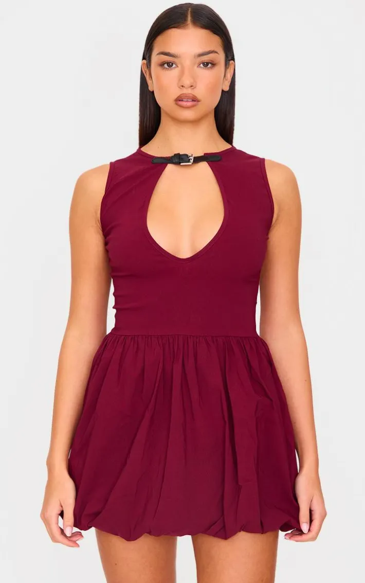 This burgundy stretch woven belted puffball mini dress is all the new you need for the season ahead. Brought to you in a rich burgundy shade, with a flattering stretch woven material, belted design and puffball style, what’s not to love? Team this dress with simple accessories and a pair of leather look loafers to complete the look.