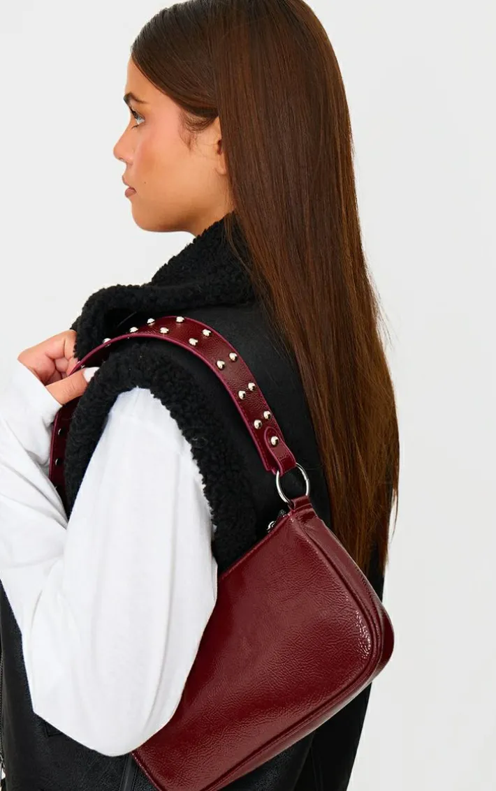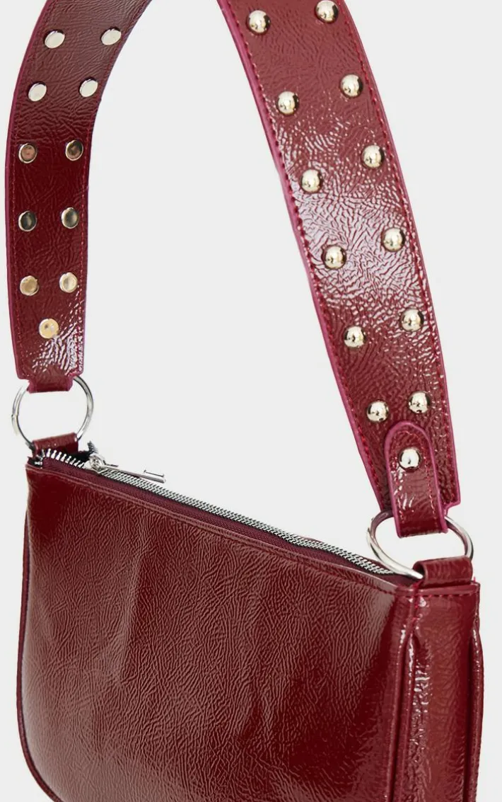 Make styling easy this season with this burgundy stud handle shoulder bag. Brought to you in a burgundy hue material with a stud handle, this shoulder bag is all the new you need. Team with a chic look for an elevated finish.