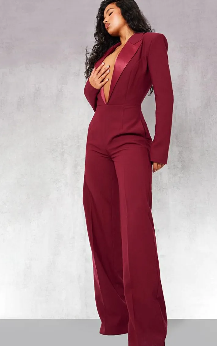 When the weekend calls for a touch of glam this burgundy tailoburgundy satin lapel straight leg jumpsuit will have you showing off your confident side. It is made using a burgundy material with saying lapels and a straight leg design, you won’t be able to resist. Style this tailoburgundy jumpsuit with your highest heels and simple accessories for a look everyone will remember.