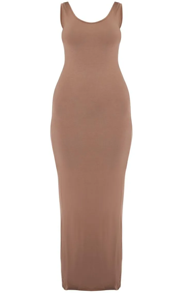 Doll this seriously flattering camel maxi dress is perfect for all occasions. Featuring a basic scoop neckline in a comfy jersey fit, style this up with strappy heels or go for a day time chic look with your box fresh sneakers.