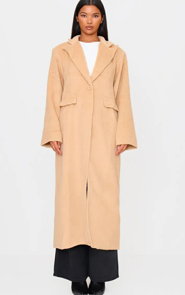 Take your A/W wardrobe to the next level with this camel brushed wool look oversized drop shoulder coat. This coat is brought to you in a camel brushed wool look material with a drop shoulder and an oversized fit, what’s not to love? This coat is here to have you looking on-trend this season. Layer over your outfit of the day to take the look from 0-100 instantly.