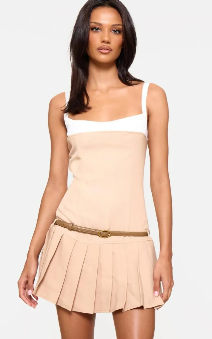 Look the best dressed for any occasion with this camel contrast bust detail pleated skirt bodycon dress. Brought to you in a camel material with a contrast bust detail and a pleated skirt design, you are sure to be the center of attention, what more could you want? This bodycon dress pairs perfectly with some knee high boots and your fave shoulder bag for a combo we’re crushing on.